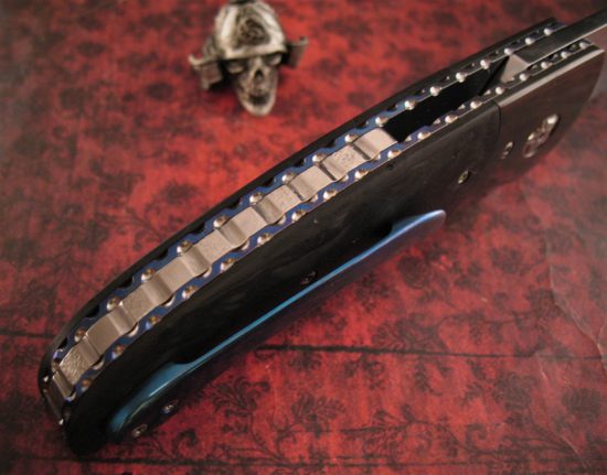 Artistic, Stylized Timascus Low Rider pocket Clip set for Tip up Carry.