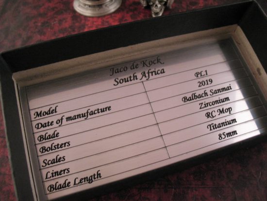 Fort Henry Custom Knives is proud to be a Direct Dealer for Jaco de Kock of South Africa