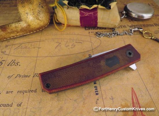This is the First Time Jared has used this Vintage 40 Year Old Canvas Micarta. Extremely Solid build, tough enough for any daily cutting ~ sleek enough to be considered a Gentleman’s Flipper but with evident Traditional Elements.