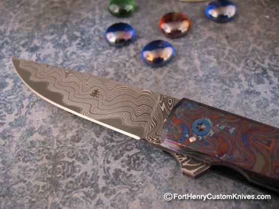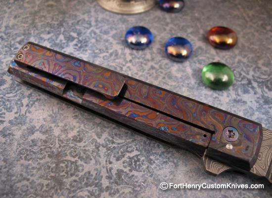 This is an Incredible example of Jason Clark’s – Custom Buzz Flipper with the best materials available. This is one of only a hand full of knives that I have ever seen with a Solid Black Timascus Frame!