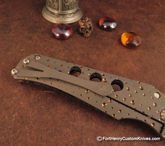 The Deep Set Titanium Pocket Clip allows for this knife to ride Discreetly, Deep in your Pocket.