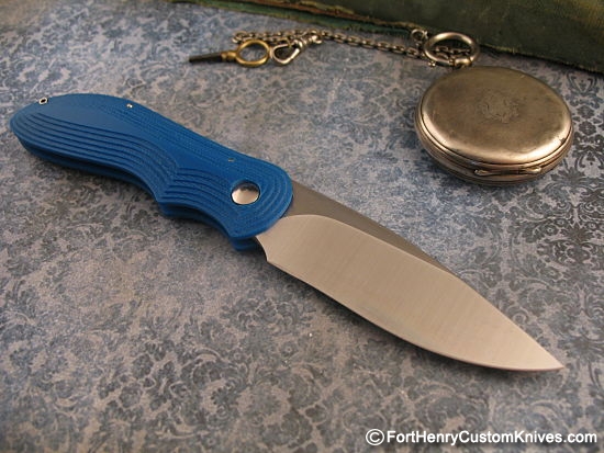 The unique handles were Custom Textured by JD. The material is G-10 and the perimeter edges have all been chamferred for a very comfortable grip.