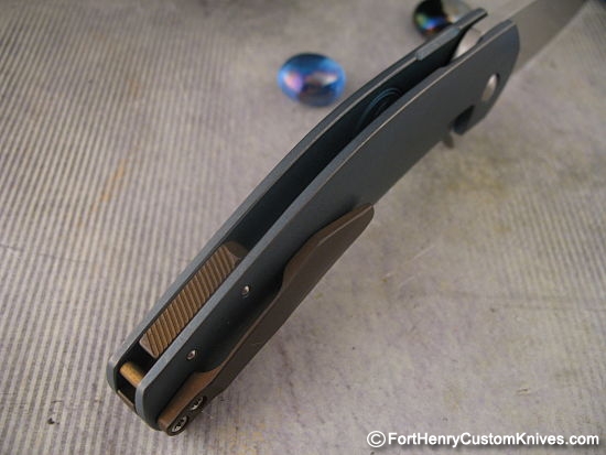 An Anodized and Creativly Milled Titanium Backspacer aids the overall stability of the knife and provides grip traction when open.
