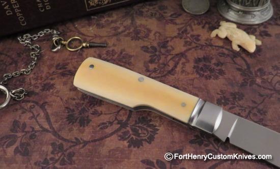 The Vintage Westinghouse Micarta is Custom Contoured and the overall knife is so Clean that you cannot feel any Seam from the Inlay, Pins or Bolsters.
