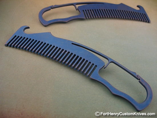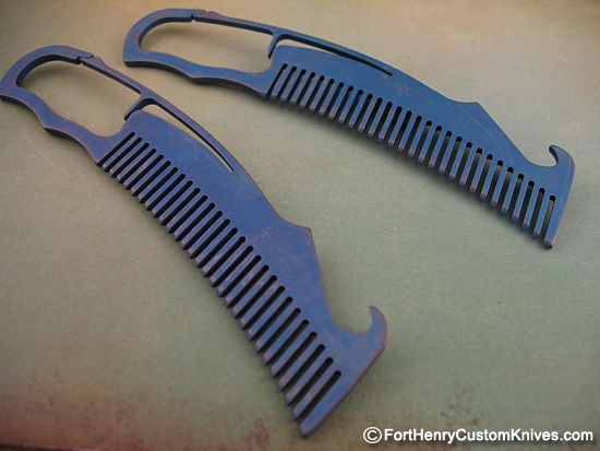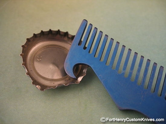 Each is Anodized a deep Blue and since these are created one at time there may be some slight color variation. Each Comb measures 7/8” Across and 5  1/4″ Long.  The Integral Bottle Opener is a must for any event where Quality Beverages are served.