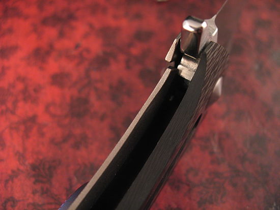 The thick Carbon Fiber front scale and Ti reverse scale have been expertly contoured and chamfered for a wonderfully comfortable hand filling grip. The action is superb with just the right detent.