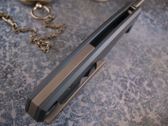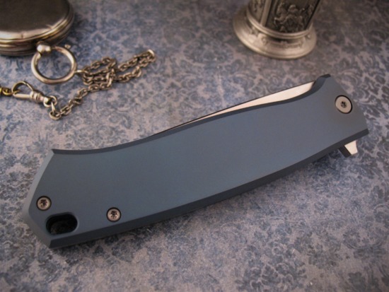 The elongated profile when open reminds one of a fine sportscar. The Contoured Titanium Frame has been given a unique Slightly Textured Finish. Kamil used All Titanium Hardware and gave each piece an immaculate Anodized finish.