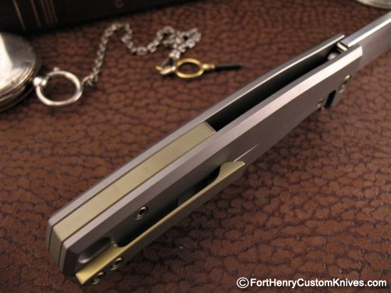 The sleek profile when open reminds one of a fine sportscar. The Contoured Titanium Frame has been given a unique slightly textured finish. Kamil used All Titanium Hardware and gave it a Polished Gold Anodized finish.