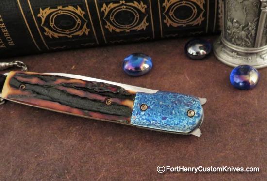 Kansie also gave this knife a Custom Anodized Titanium Clip set for tip up carry.