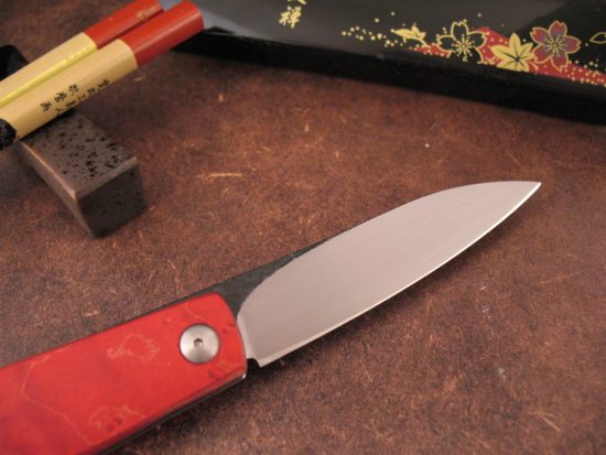 The D2 Blade was Hand Ground and then Kansei gave it a Labor Intensive Hand Rubbed Finish.