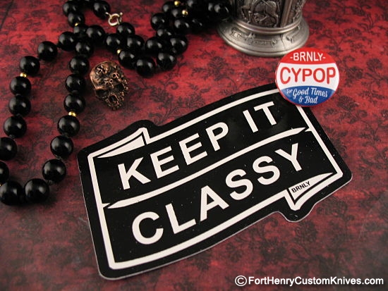 Commemorative Cypop Button. As well as a Burnley Phrase “Keep it Classy” Banner sticker