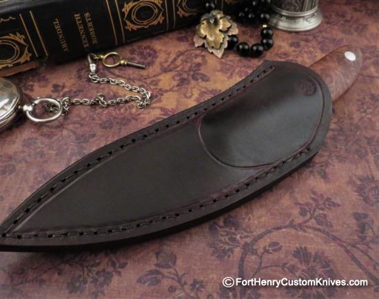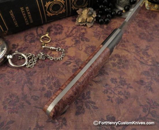 This is an Elegant and Lightweight Full Tang design and Mariano has expertly Custom Contoured the Maple Burl scales to create a very comfortable Full Grip handle.