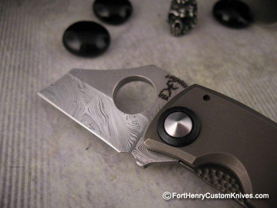 This Knife is special in that it is the First and Only Killer Bee with a Damasteel Blade. The Blade has a very High Hollow Grind for excellent cutting ability. The blade opens very smoothly using the Licensed Spyderhole.