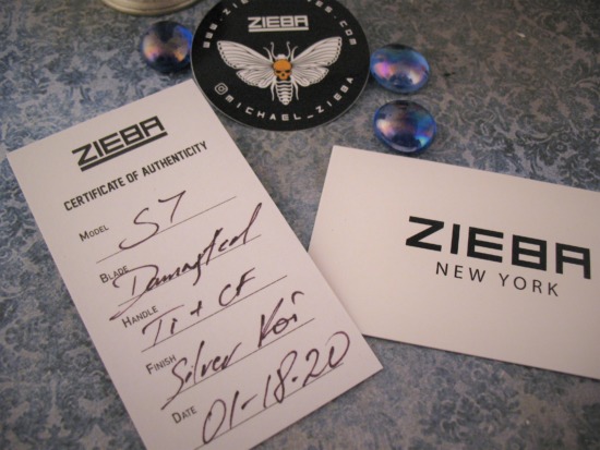 Precision crafted by Michael Zieba in Brooklyn NY – this is offered with Incredible Marble Carbon Fiber and Custom Anodized Titanium Hardware.