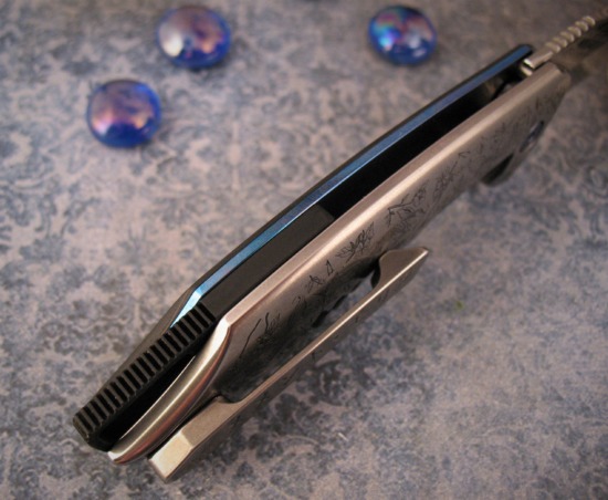 Finished with a Fully Engraved Titanium Reverse Side with low Rider Pocket Clip for Tip Up carry