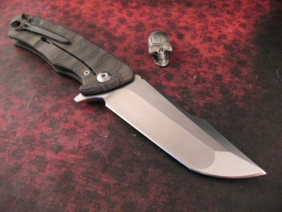 This S1 Model of Michael’s has an Aggressive Harpoon Style blade grind! It is both Classy and Utilitarian at the same time, the Titanium Frame has Michael’s “Snake” finish.