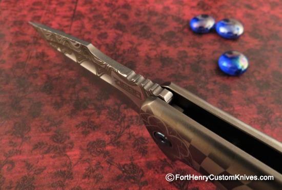 The knife has an Open Frame Construction with Anodized Titanium Standoffs to match the pivot. The entire piece has amazing detail.