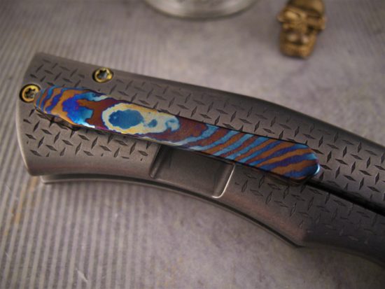 Michael gave this New Mini a Custom Diamond Pattern on both sides of the Contoured Titanium Frame. All Hardware is Titanium with Custom Anodizing.