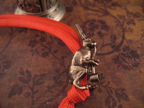 “Native American Legends tell us that the Rabbit was a great Hunter and a bit of a Trickster, but most of all the Rabbit was confident in his abilities. Even as the Cat circles the fern, plotting his attack, the Rabbit enjoys his Pipe, confident in his abilities to avoid the mortal enemy.