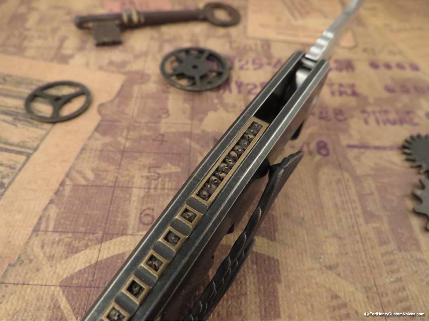 The entire piece has amazing detail with a Bronze cast “Memento Mori” Pile of Skulls Miniature backspacer.