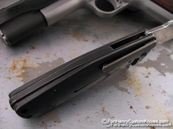This Knife is Serial Number #74 and it has incredible detail. The Subtle Matching Titanium Clip can also be Adjusted for either Right or Left hand carry and allows for Deep, Discreet carry.