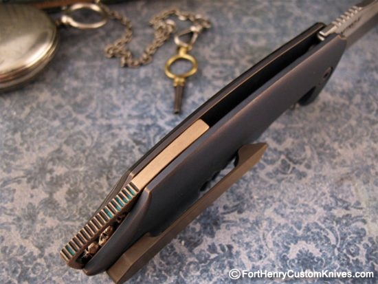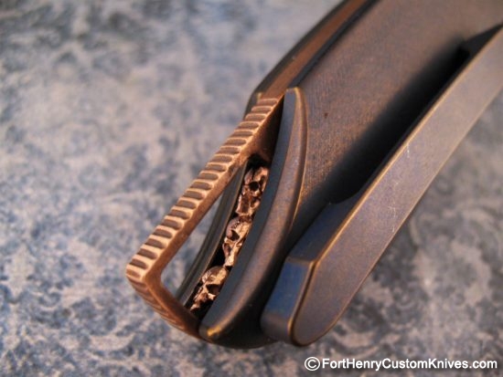 Matching Satin Finished & Anodized Titanium Pocket Clip for easy Low Rider Tip Up carry. This Pic Shows the Bronze Insert’s Matching Clip.