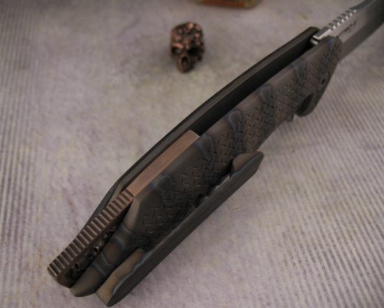 Custom Thumb Ridges on the Spine aid the Security of the Grip when open.
