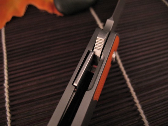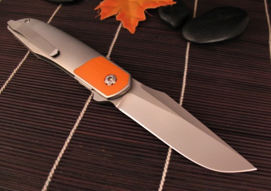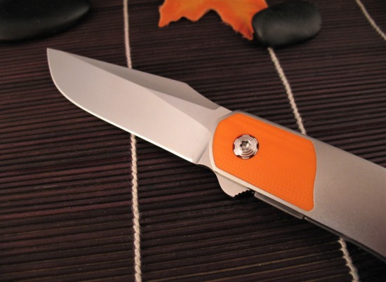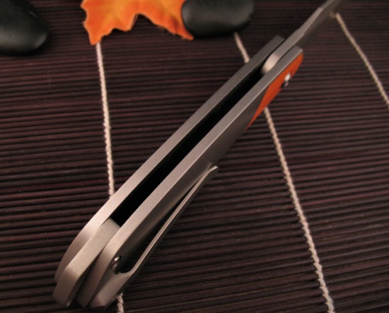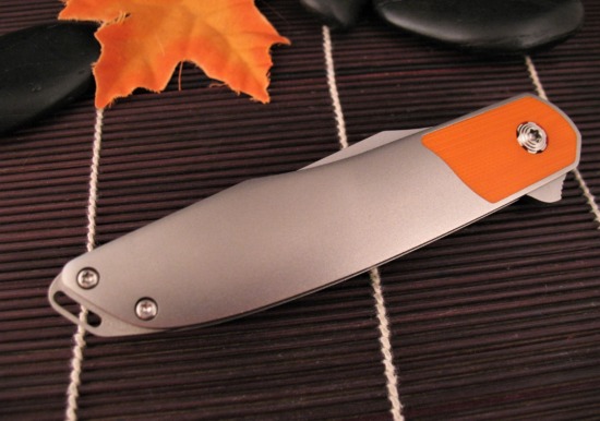 Crafted from Contoured Titanium, the Scales have a Flawless Orange Peel Texture with an Orange G10 Inlay bolster.