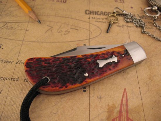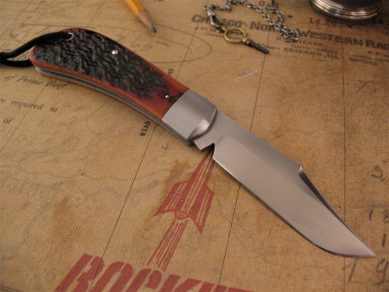 This is a very unique Jigged Bone Lanny’s Clip model Slip Joint hand crafted by Pepe Jalomo