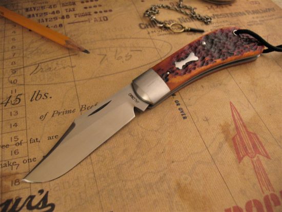 Extremely Solid build, tough enough for any Camp or Game chore. The Blade has superb “walk and talk” and the Half Stop is very secure.