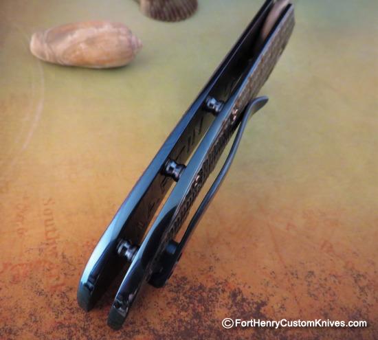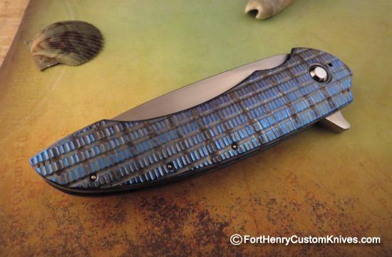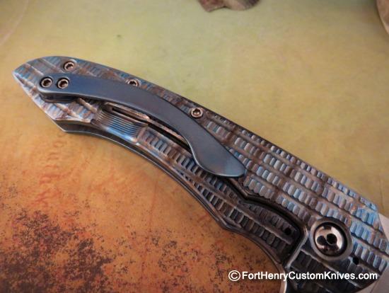 No detail is out of place on this knife ~ A Robust yet Artistic piece of cutlery! Right down to the Custom Designed Ti Pocket Clip with Orange Peel Finish!
