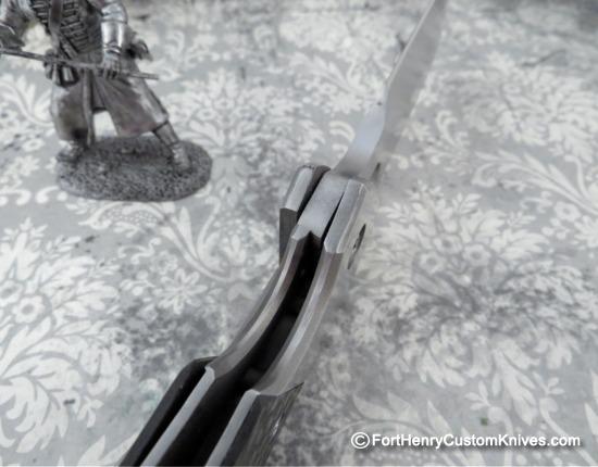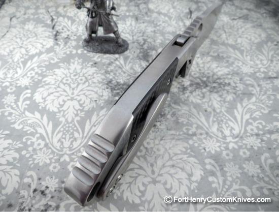 The Peter Rassenti Alpha Integral is an overbuilt precision made knife in a bomb proof package. Extremely thick, One Piece Titanium Frame with custom Carbon Fiber Inlays on each side. The S90V Blade has a labor intensive Hand Rubbed finish, in a Modified Drop Point shape. This design utilizes the Licensed Spyderhole for ambidextrous opening.