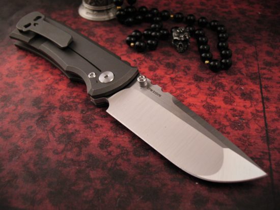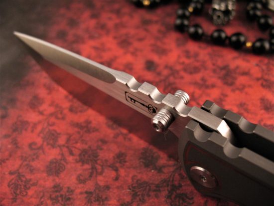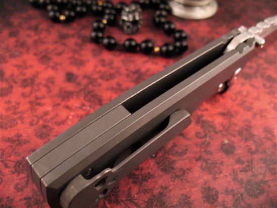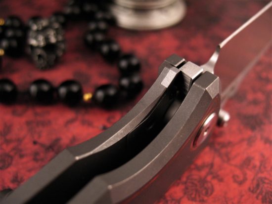 The Spine has Deep Thumb Ridges that extend onto the Thick Titanium Frame.