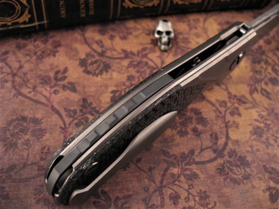This is one of the Rare Custom Division models ~ an absolutely incredible FrameLock Flipper – an F3 in Lightening Strike Carbon Fiber and Multi Row Bearings