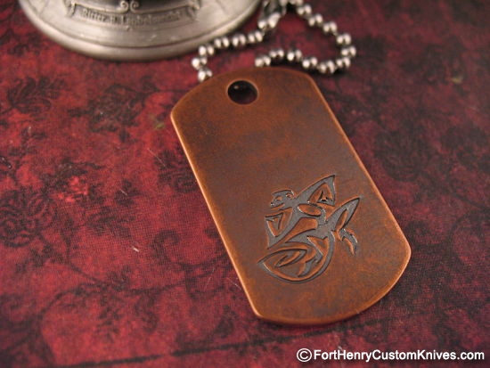 This is a distinctive Solid Copper Monkey DogTag by Derrick Obatake of Steel Flame