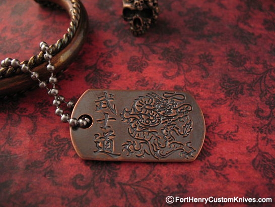 This is a distinctive Solid Copper DogTag by Derrick Obatake of Steel Flame