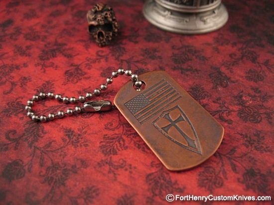 This is a distinctive Solid Copper Patriot Guardian DogTag by Derrick Obatake of Steel Flame