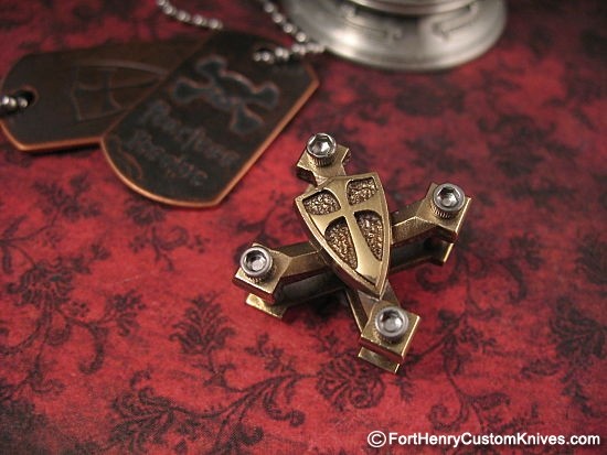 This is a Crusader Dog Tag Holder in Royal Bronze by Derrick Obatake of Steel Flame