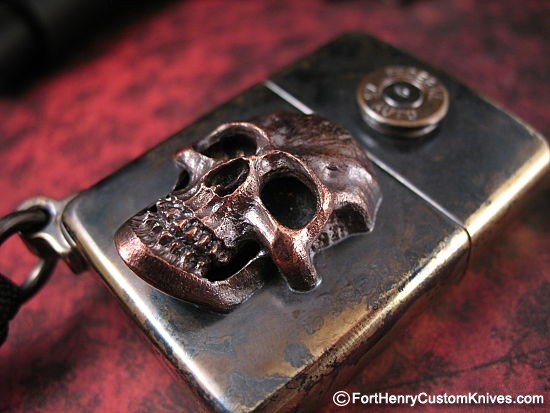 This Armour Zippo Lighter is approx 30% thicker than a standard Zippo, it has a Solid Copper Body with Custom Ancient Acid finish and tons of custom enhancements created by Derrick.