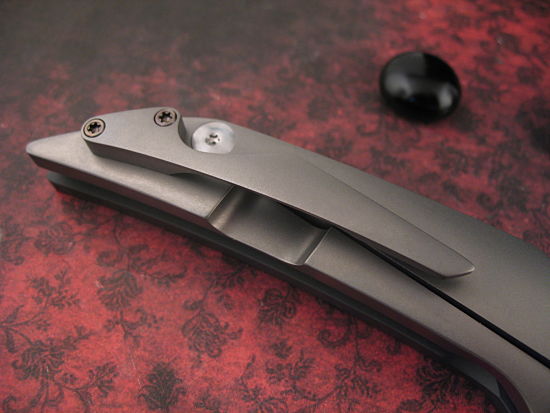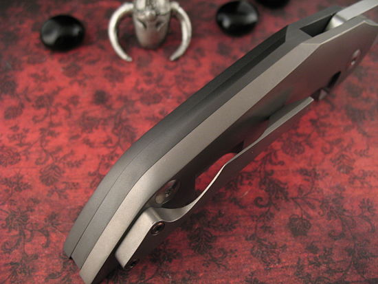 The knife has a Thick Zirconium front scale and a full length Zirconium backsapcer that blend so precisely that you cannot even feel the seams.