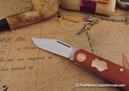Thys Meades Hand Crafted this incredible Mini Barlow with an expert eye toward Precision Fit & Finish. He chose tough Vintage Carmel Westinghouse and added an Elegant Japanese Mokume Federal Shield.
