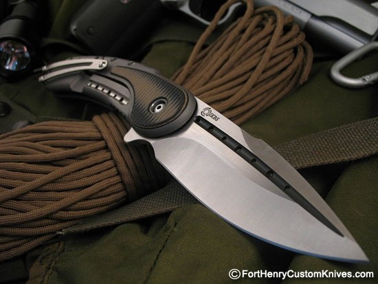 A very sleek design. The Flipper on this one is incredible, it has IKBS and the blade literally leaps out of the frame when the flipper is engaged. The blade has a modified Dagger style Grind and is razor sharp. This knife also has the new Begg Design Replaceable Lock Bar.