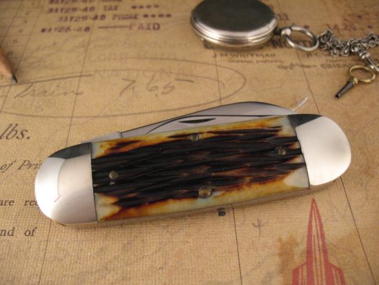 This is an Amazing Equal End Slipjoint (aka Sunfish) by Great Eastern Cutlery/ Tidioute Cutlery with Rare Burnt Grizzly Bone