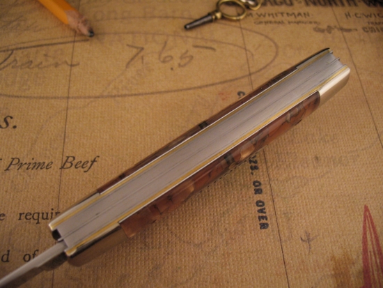 The Model of this knife is #613409 ~ it has beautiful “Looking Glass Grandma’s Kitchen Floor” handles, and High Polished Bolsters. This particular example is Serial Number 24 from the first Factory Test Production Run
