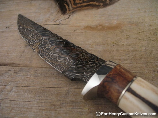 This special knife has Herb’s NEW High Carbon Twist Pattern Damascus that is over 2,500 layers thick and a gorgeous Sambar Stag handle.