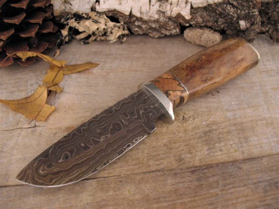 I have been a Dealer for Herb Derr Custom knives for over a decade, long before I had a website I sold Herb’s knives at Gun & Knife Shows, most often to repeat Customers.  Herb’s pieces are sole authorship ~ he forges his own Damascus, grinds his own blades, makes his own Leather Sheaths and still finds time to Teach courses at a Community College on how to make Damascus.