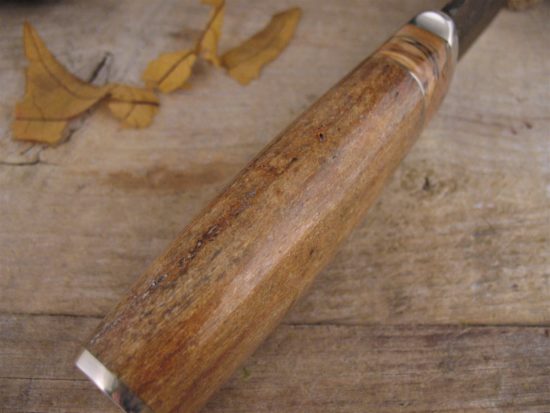 The handle is flanked by Nickel Silver Spacers and a Stabilized Spalted Maple forward spacer which adds a dash of contrast to the handle.