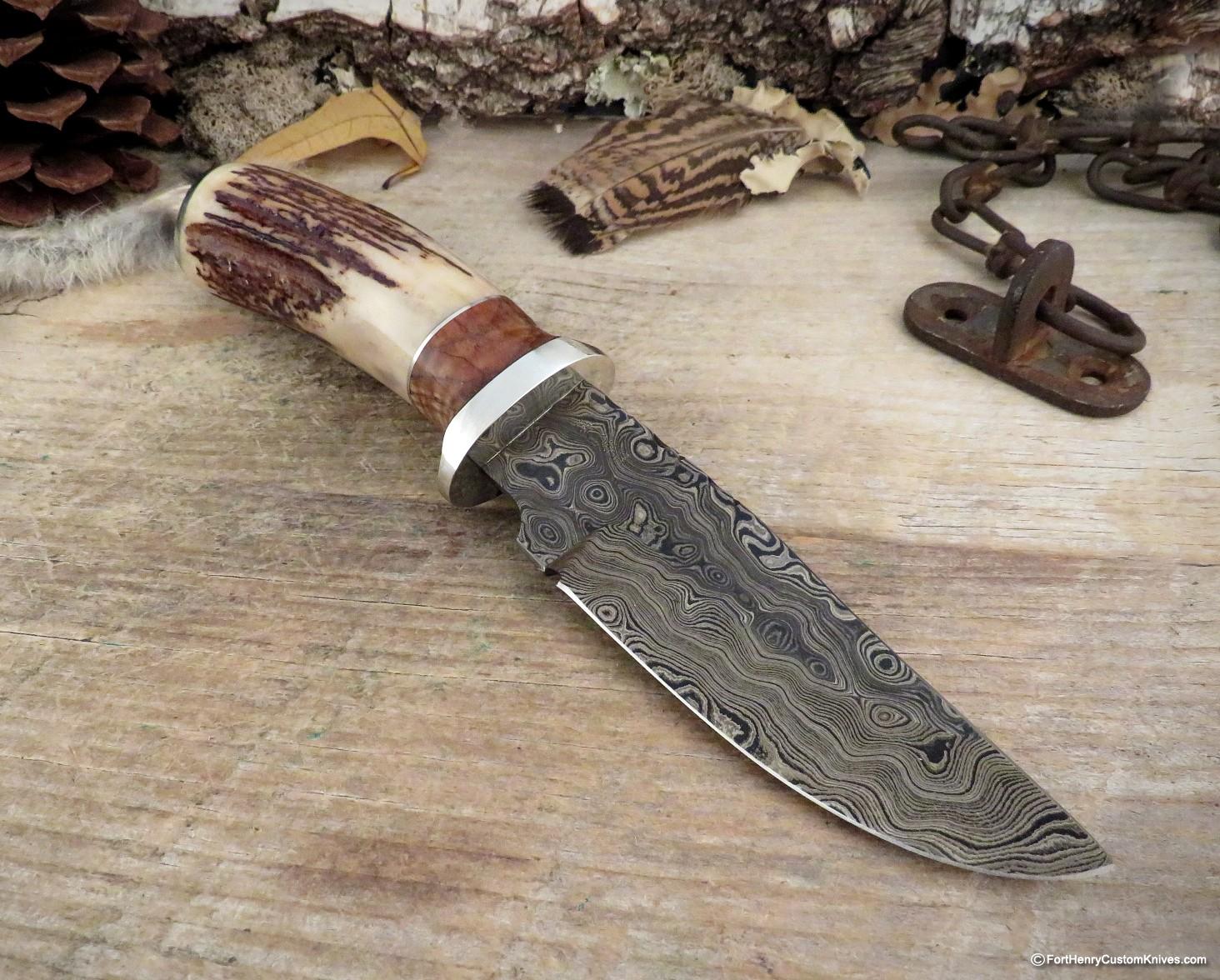 Here is a Herb Derr Cascade Clip Point Hunter that has his high contrast Sole Authorship Birds Eye Damascus. This is a great looking knife with artistic attributes, but I guarantee it will perform as good as it looks.