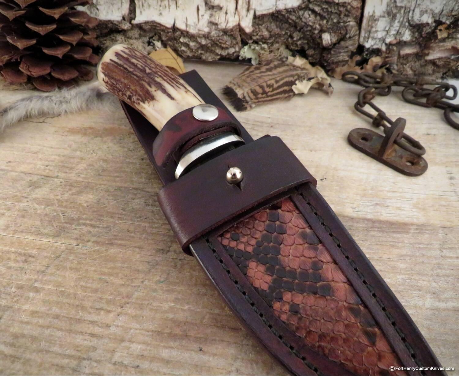The Heavy Leather RH Leather Belt sheath has Boa Constrictor Skin as the inlay. Deep, snug fit and a wonderful compliment to the knife.