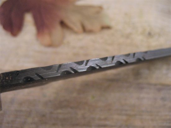 On this knife Herb has also added some Vine Filework on almost the entire length of the Spine which looks great but serves a dual purpose of also replacing Thumb Ridges for grip enhancement.